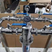 除菌過濾器一般采用十字懸掛式,水平進出。多芯過濾器可設(shè)計成落地式。有些使用場合根據(jù)實際需要分成預(yù)過濾器、精過濾器兩種。進入過濾器的壓縮空氣必須先經(jīng)過至少三級的精密過濾器及干燥機。除油、除水、除塵,油霧濃度應(yīng)≤0.01PPM,否則將影響除菌濾芯的壽命,達不到預(yù)期的除菌效果。作為罐體、設(shè)備的呼吸器使用時,其作用主要在于連通大氣防止設(shè)備內(nèi)部負壓和隔離開空氣中的污染源,過濾方面的功能不大,因此在過濾上基本無要求。根據(jù)實際使用情況每周或每月1~2次,每次30分鐘,采用經(jīng)過1μ過濾精度的潔凈飽和蒸汽殺菌。蒸汽溫度<140℃,蒸汽壓力<0.3MPa。閥門緩慢開關(guān)。